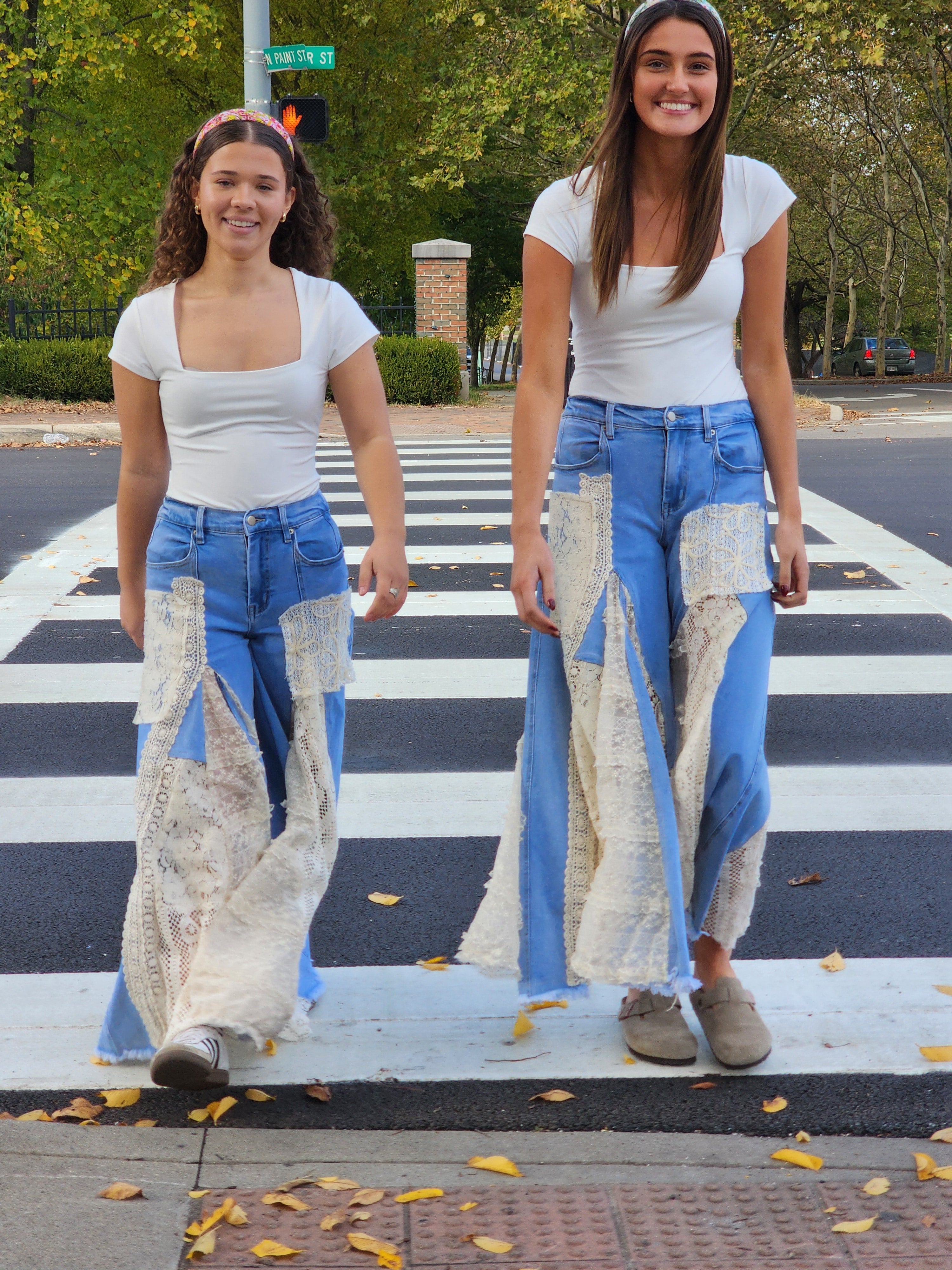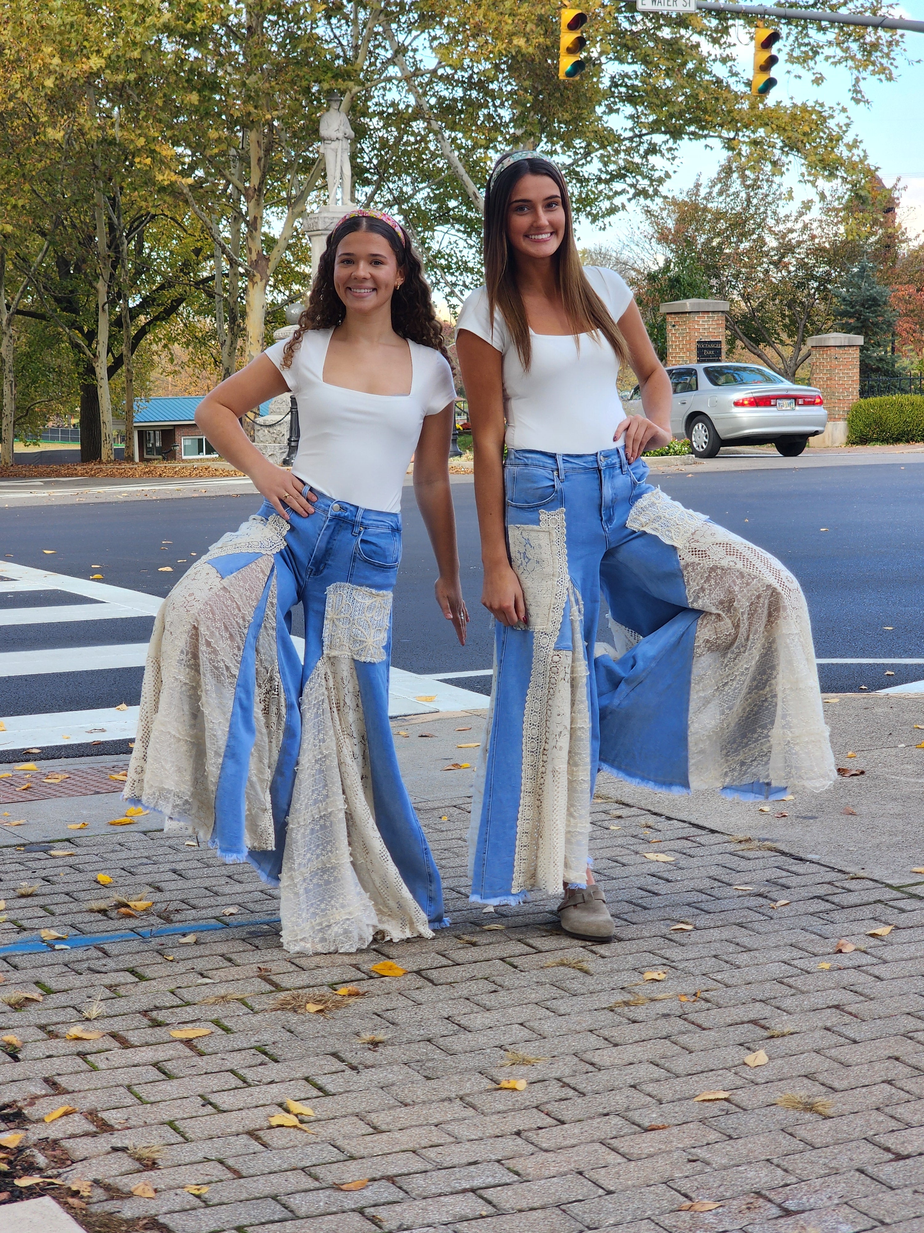 Step up your denim game with these lace side leg pants. Crafted from quality denim, they feature intricate lace detailing along both outer seams that catches the eye without overwhelming your look. The fitted silhouette pairs classic jean construction with a touch of sophistication, making them versatile enough for casual weekends or dressed-up evenings. Whether you're going for understated elegance or bold statement style, these pants deliver both comfort and character.