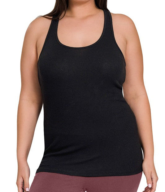 This Plus Size Racer Back Cotton Rib Tank offers a comfortable, breathable fit ideal for layering under sweaters and flannels. Made from soft cotton rib fabric, it provides gentle stretch and everyday ease, making it a versatile wardrobe staple for any season.