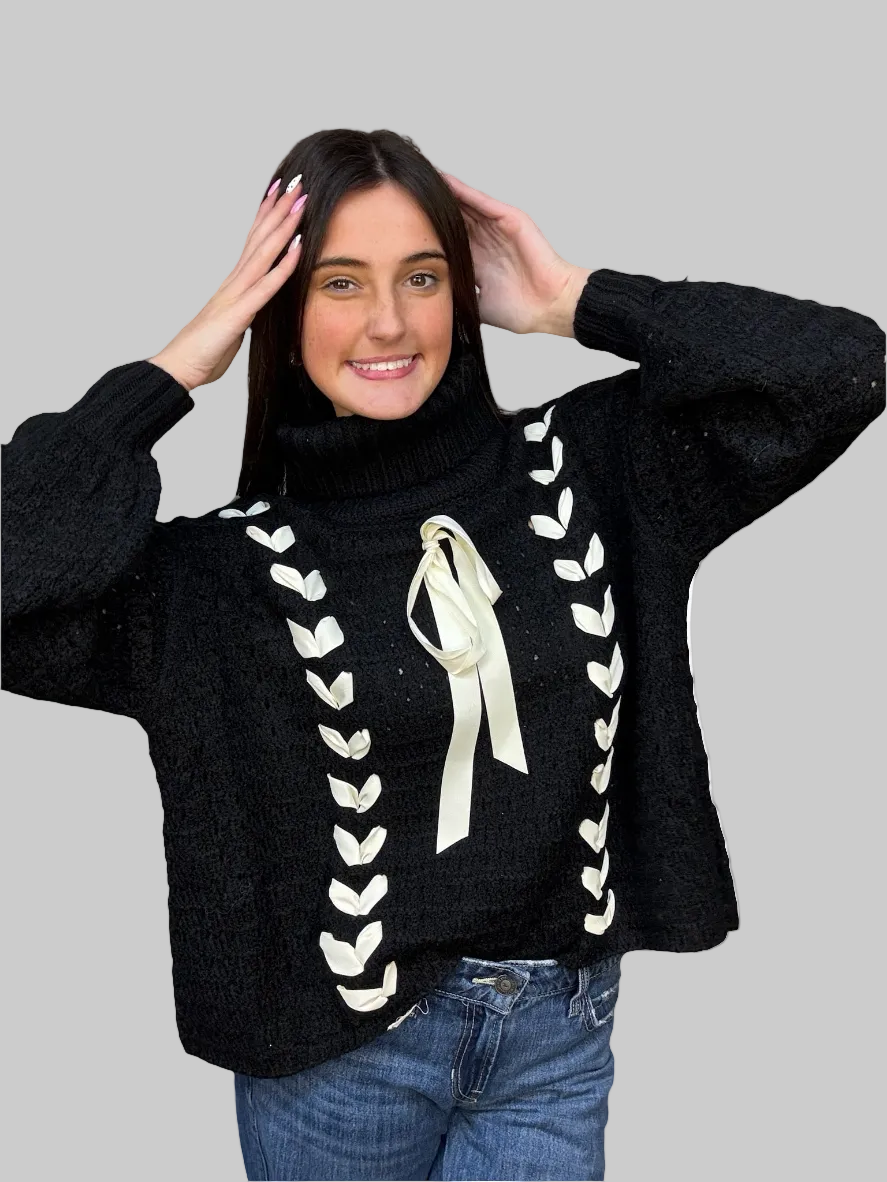 Sophisticated sweater in classic black with a delicate bow embellishment. Woven fabric provides structure and durability for everyday wear. Simple, elegant design that complements any wardrobe.