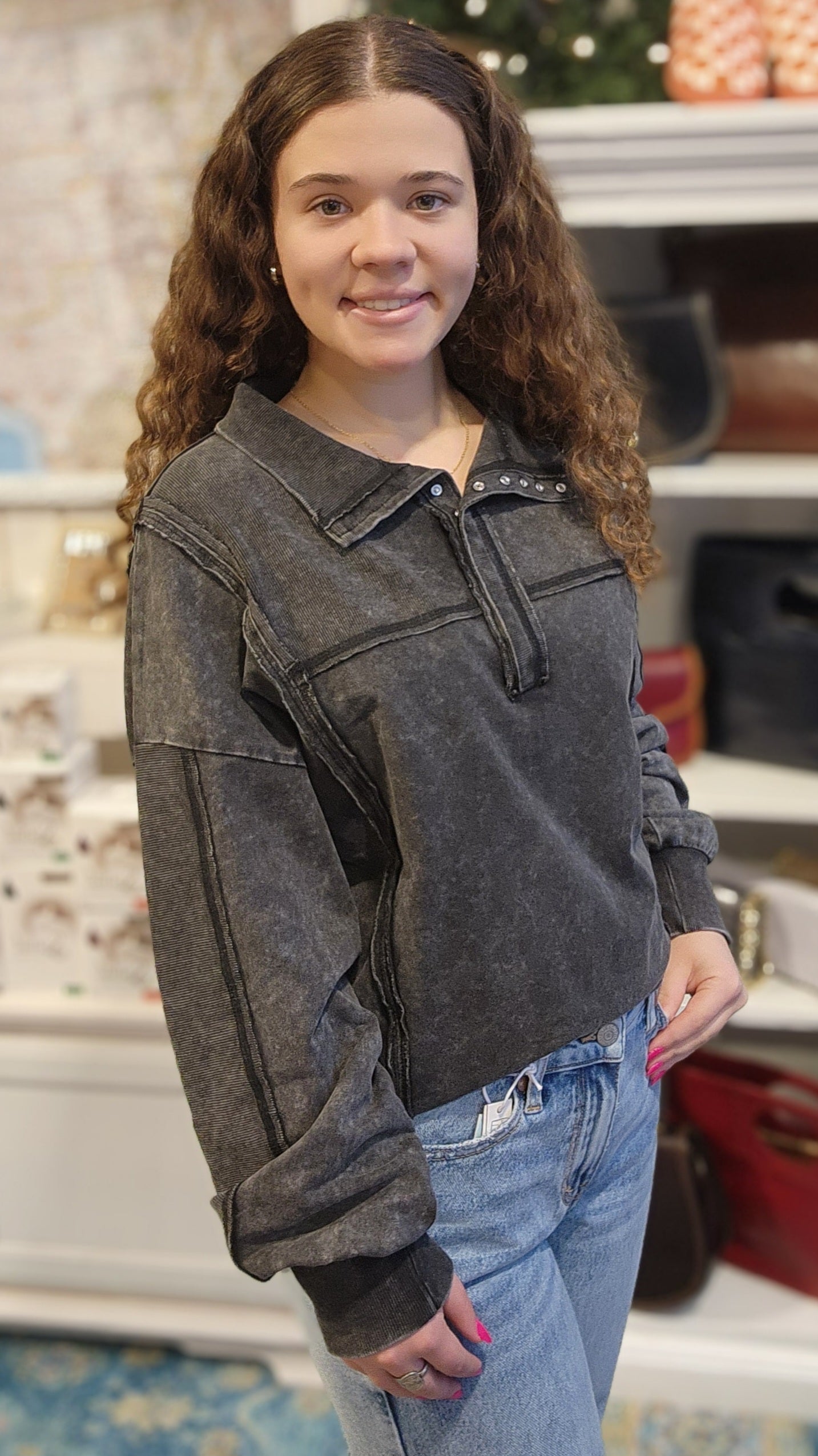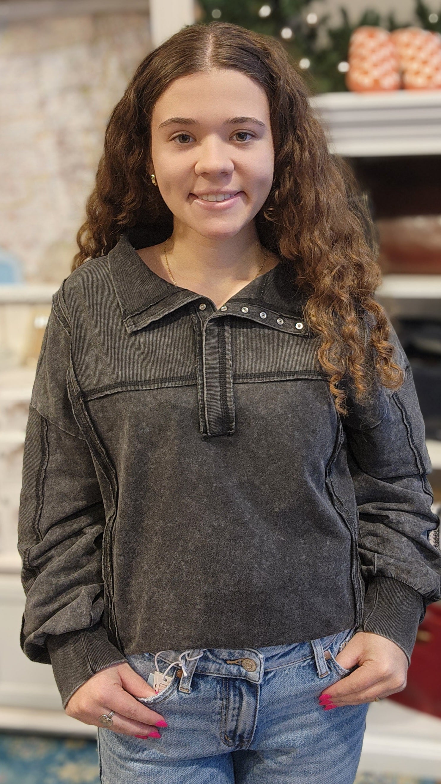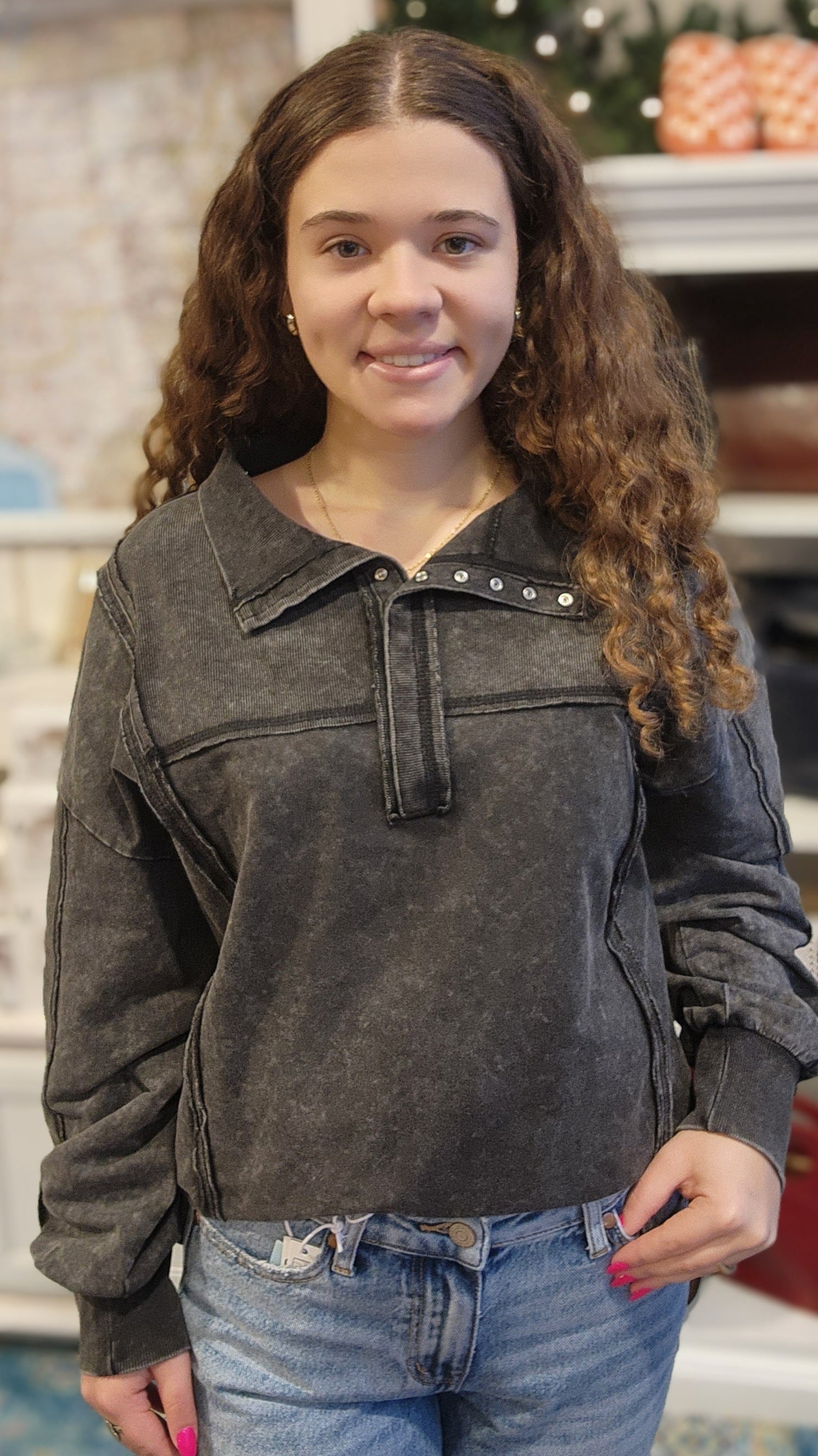 Meet your new go-to layering piece. This oversized knit top combines comfort with understated style through its half button-down front and mock neck design. The drop shoulder cut and long sleeves create an intentionally relaxed fit, while raw edge detailing adds a contemporary touch. Whether you're dressing it down with jeans or layering it under a blazer, this contrast knit top delivers the kind of versatility that makes getting dressed easier.