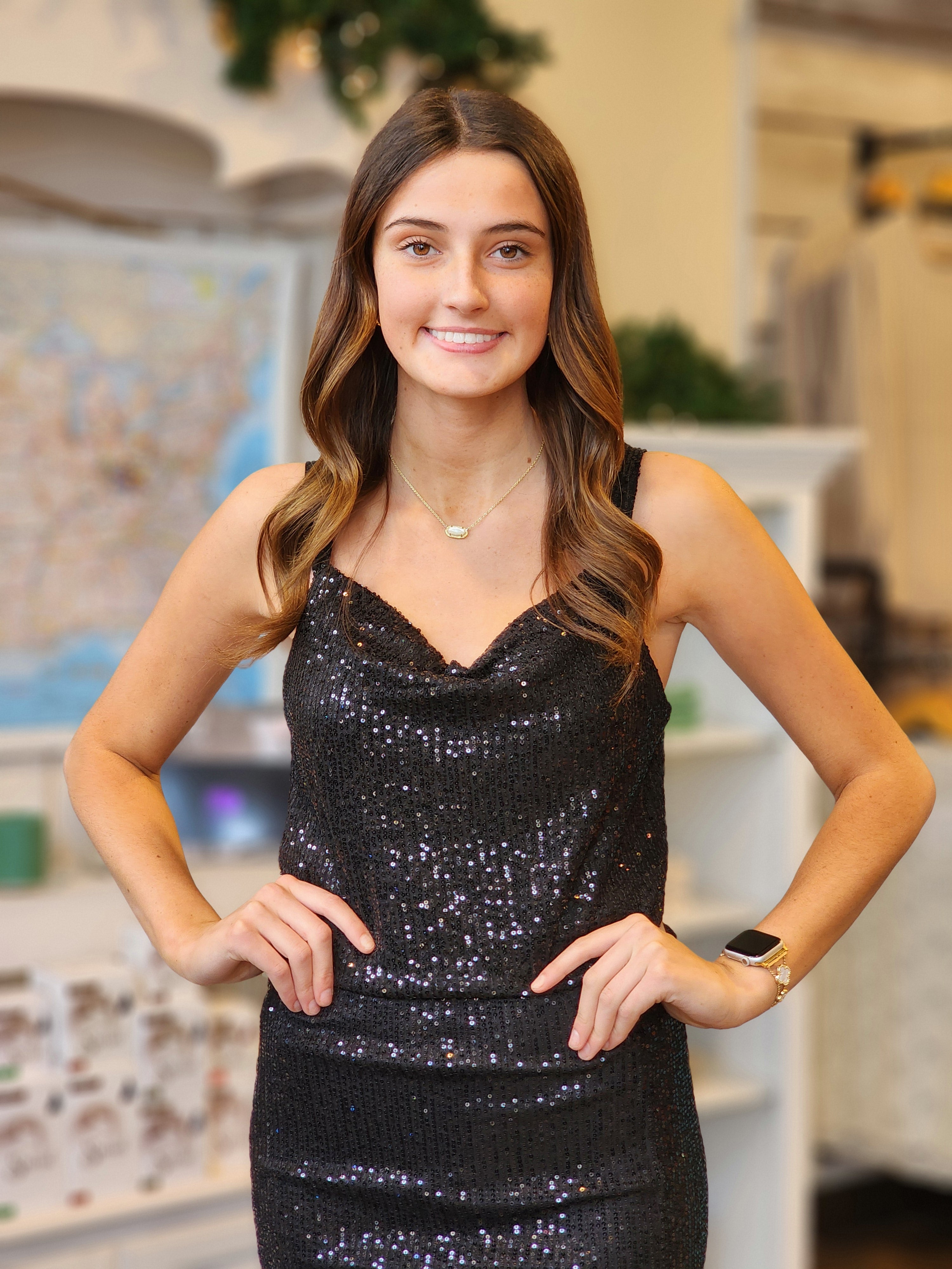 Shine bright in this stunning sequin tank top, thoughtfully designed with a graceful cowl neck and flattering cropped fit. You'll love how effortlessly it transitions from day to night slip it on with jeans for an understated sparkle, or pair it with a mini skirt to make a bold statement. The shimmering sequin fabric catches every light, giving you that confident, radiant feeling you deserve.
