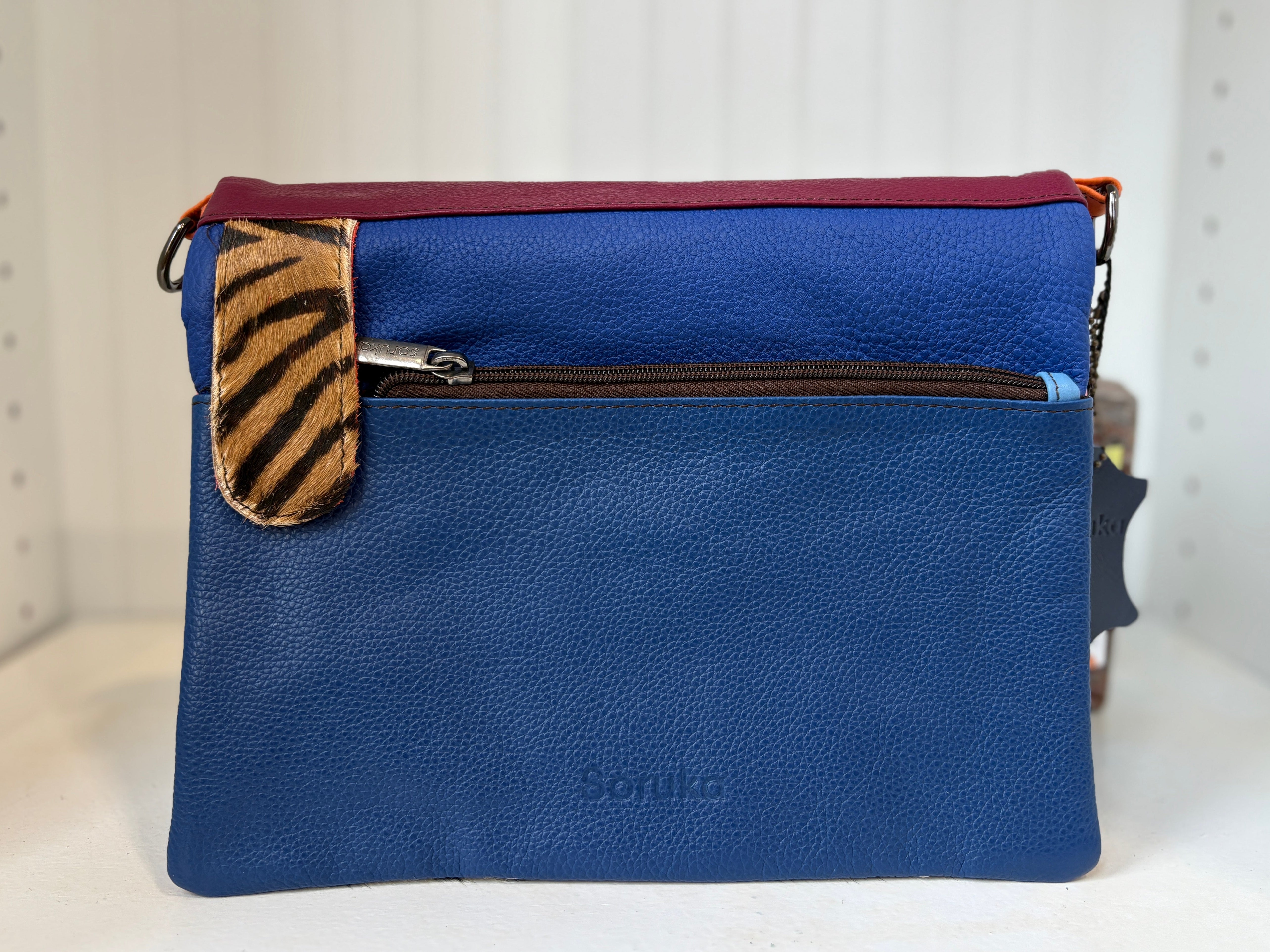 Beautiful 100% Recycled Leather Crossbody Bag. Eco-friendly Handmade Bag in multi colors and animal prints. No two handbags are alike.