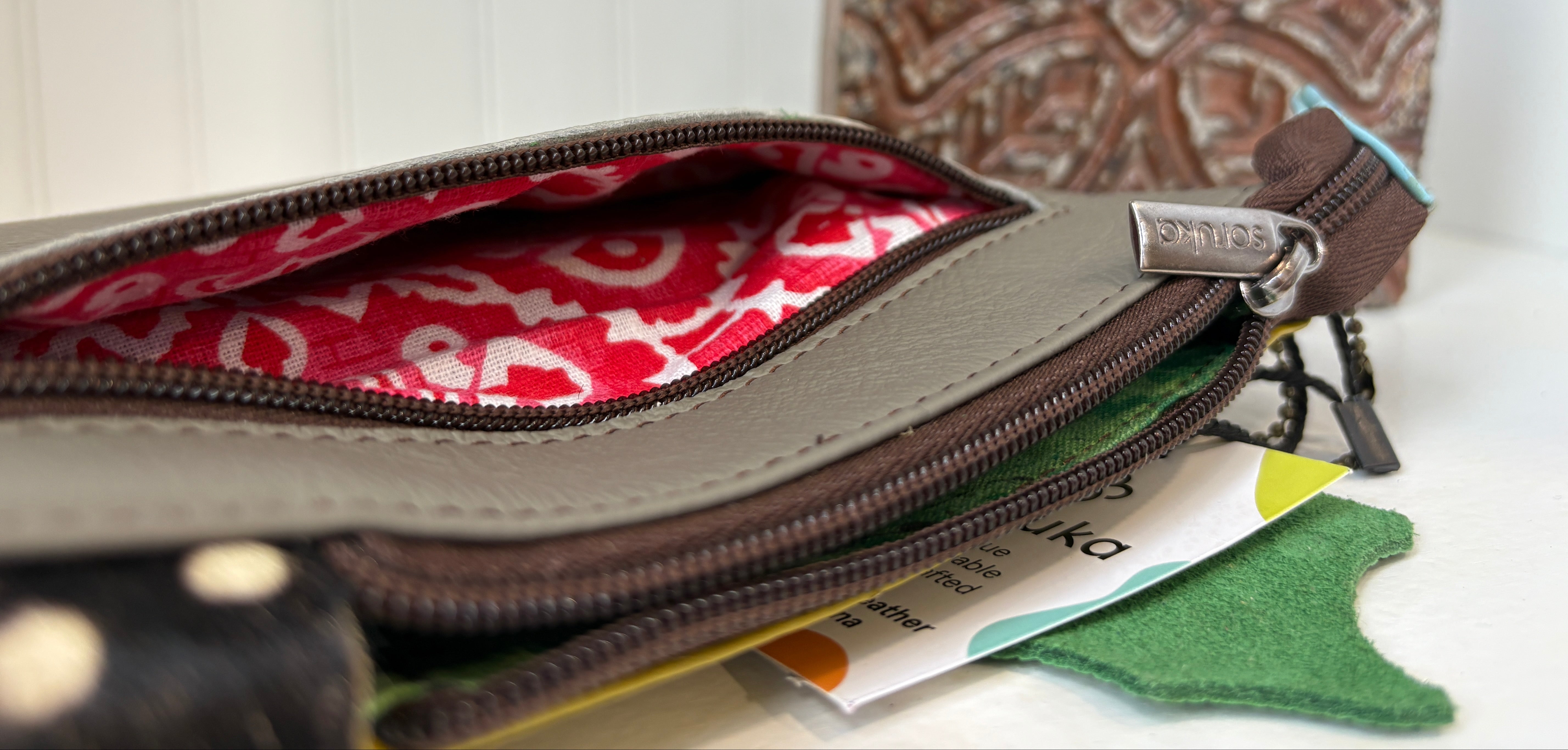 **Please note: Since all our bags are made of recycled leather scraps, some color variations are possible in the folds and inside the lining of our bags and some imperfections or variations in color and texture may occur due to the recycled nature of the leather.