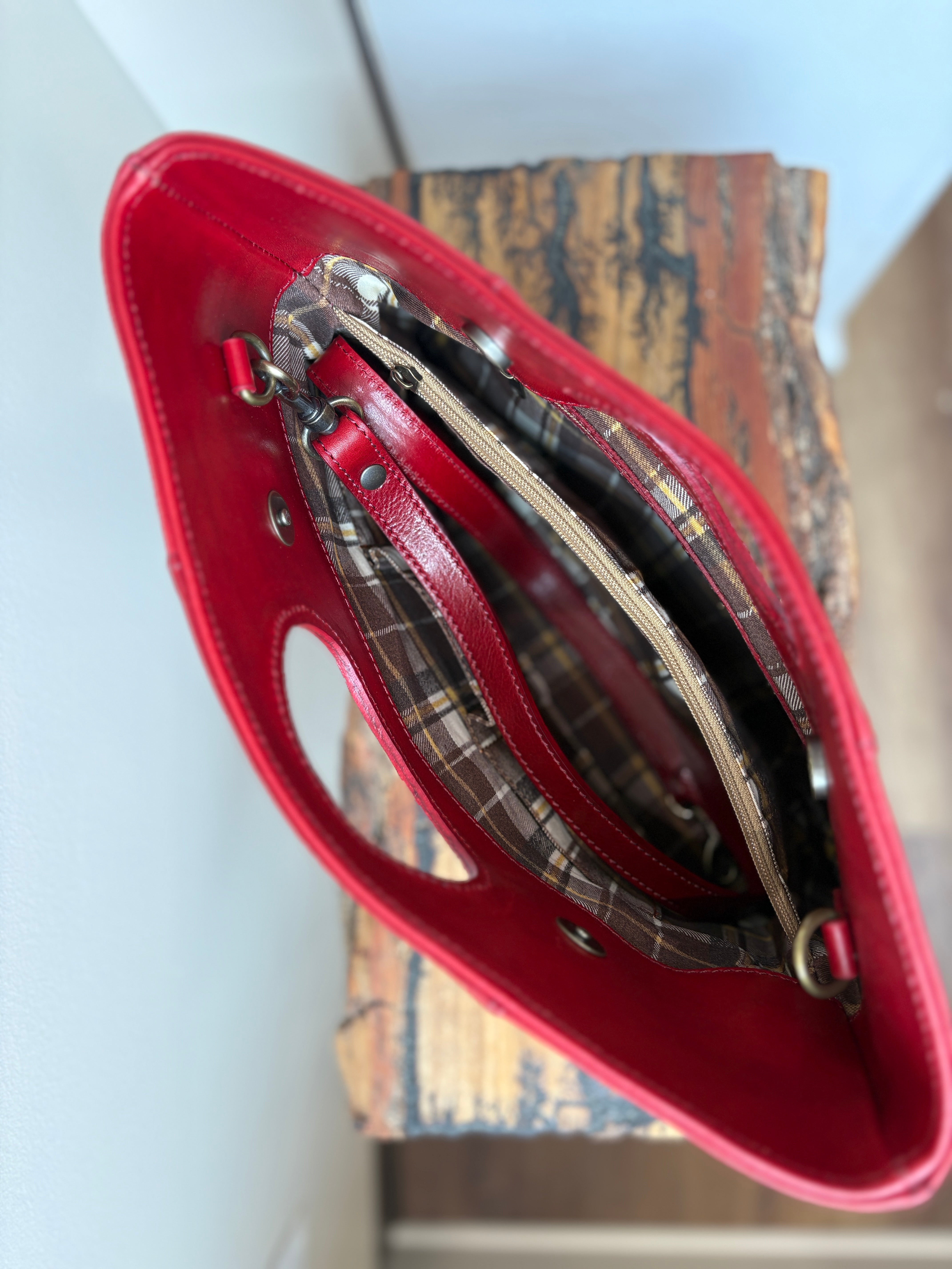 Clarissa is a versatile medium handbag crafted from genuine vegetable-tanned cow hide that develops character with age. This thoughtfully designed piece features a triple compartment layout with interior zip pockets and a dedicated mobile phone holder, keeping your essentials organized and accessible. The leather lining adds durability and luxury, while dual magnetic closures ensure your belongings stay secure. Carry it by the charming handle or adjust the shoulder strap for hands-free convenience. Perfect for daily use or weekend outings.