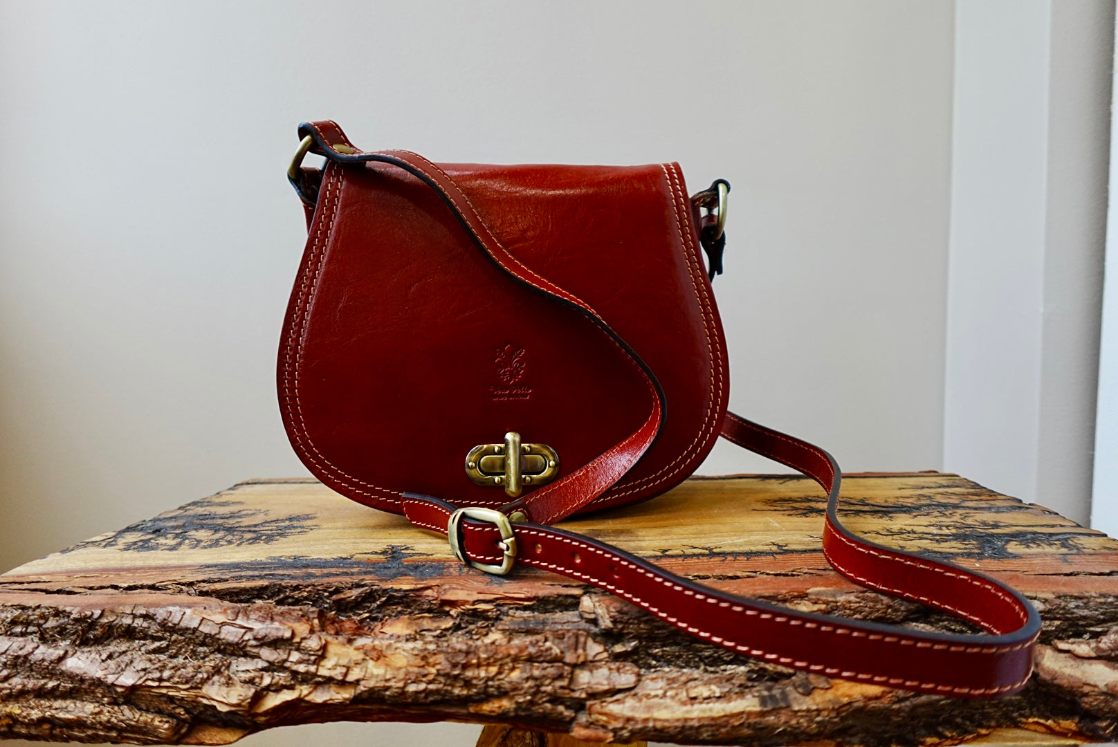 The Lucrezia Small Leather Cross Body combines timeless craftsmanship with everyday practicality. Handcrafted from genuine vegetable tanned leather, this compact bag develops a rich patina over time, making each piece uniquely yours. The signature metal turn lock keeps your essentials secure, while the interior zip pocket adds organizational ease. Double gussets expand the capacity without bulk, and the adjustable cross body strap distributes weight comfortably across your body. Lightweight yet durable, its curvy silhouette brings an elegant, feminine touch to any outfit.