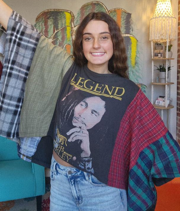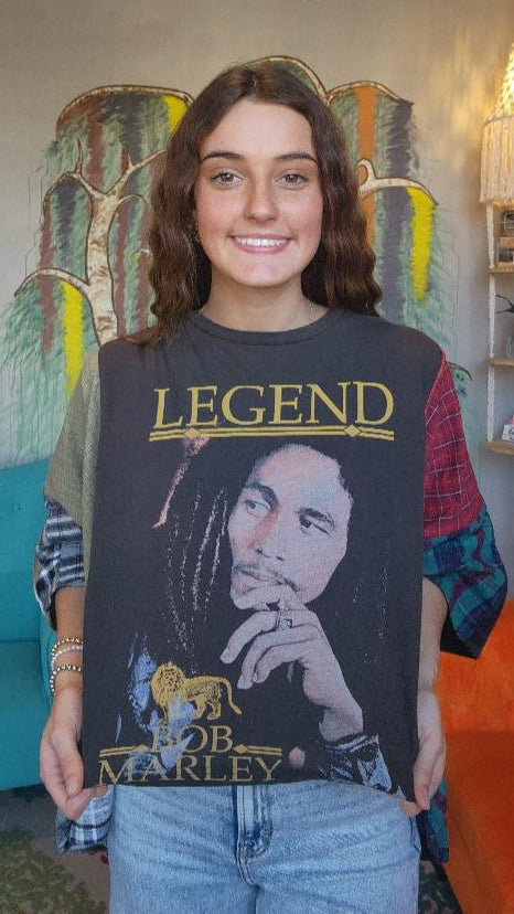 Band Tee Upcycled Flannel-Bob Marley Legend