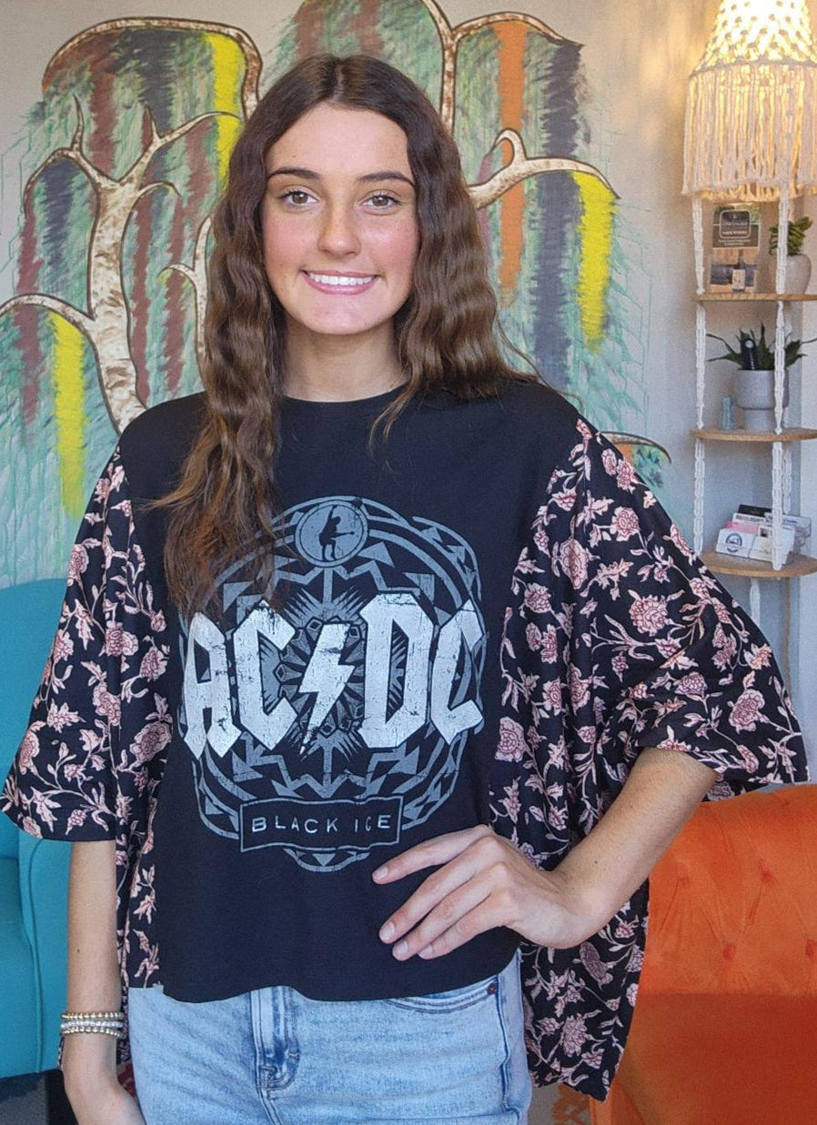 These pieces have been made using upcycled Rock band tees, each piece is one-of-a-kind and designed combining deconstructed vintage denim and upcycled band tees. This diverts it from the landfills and gives it new life.