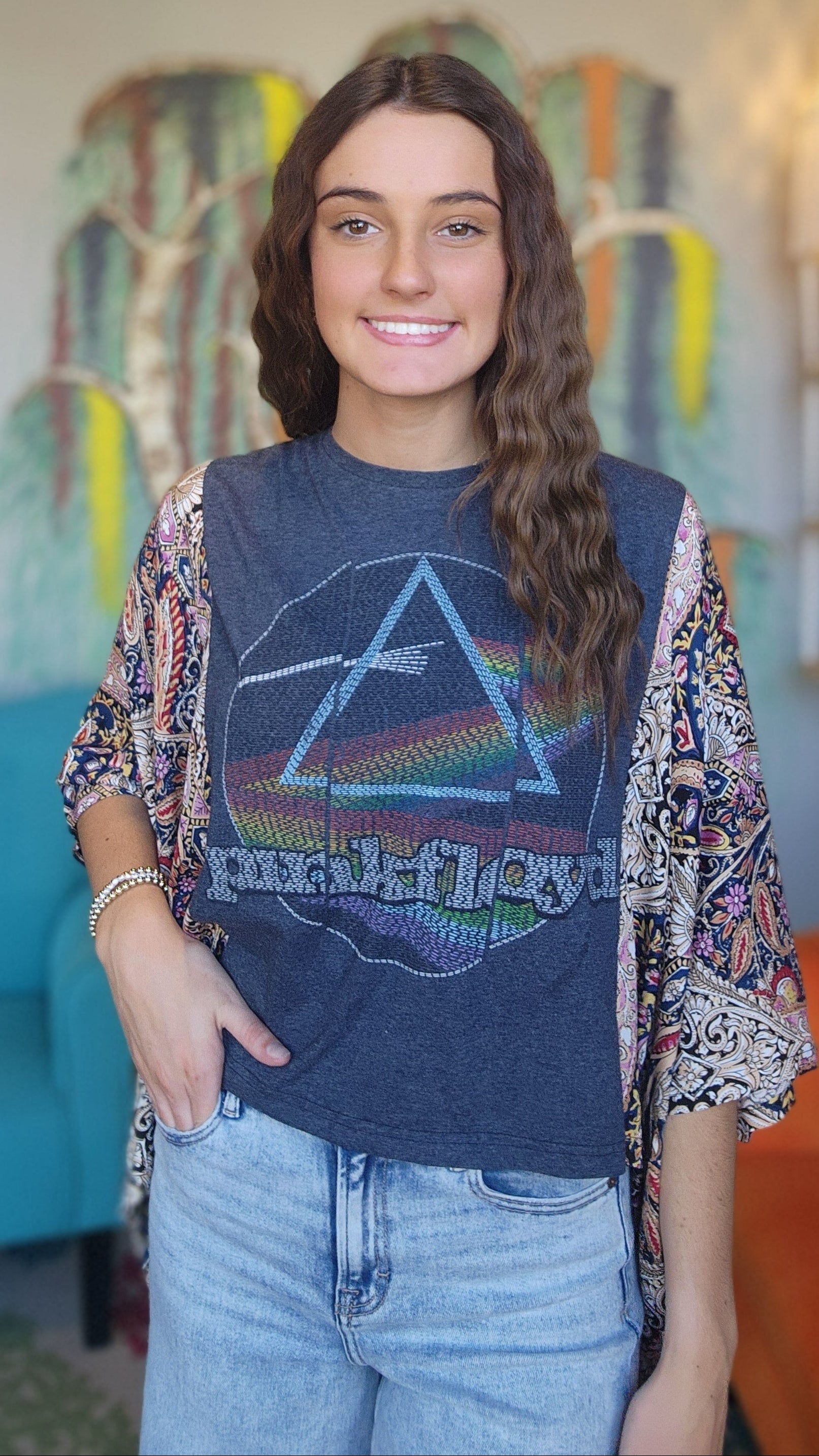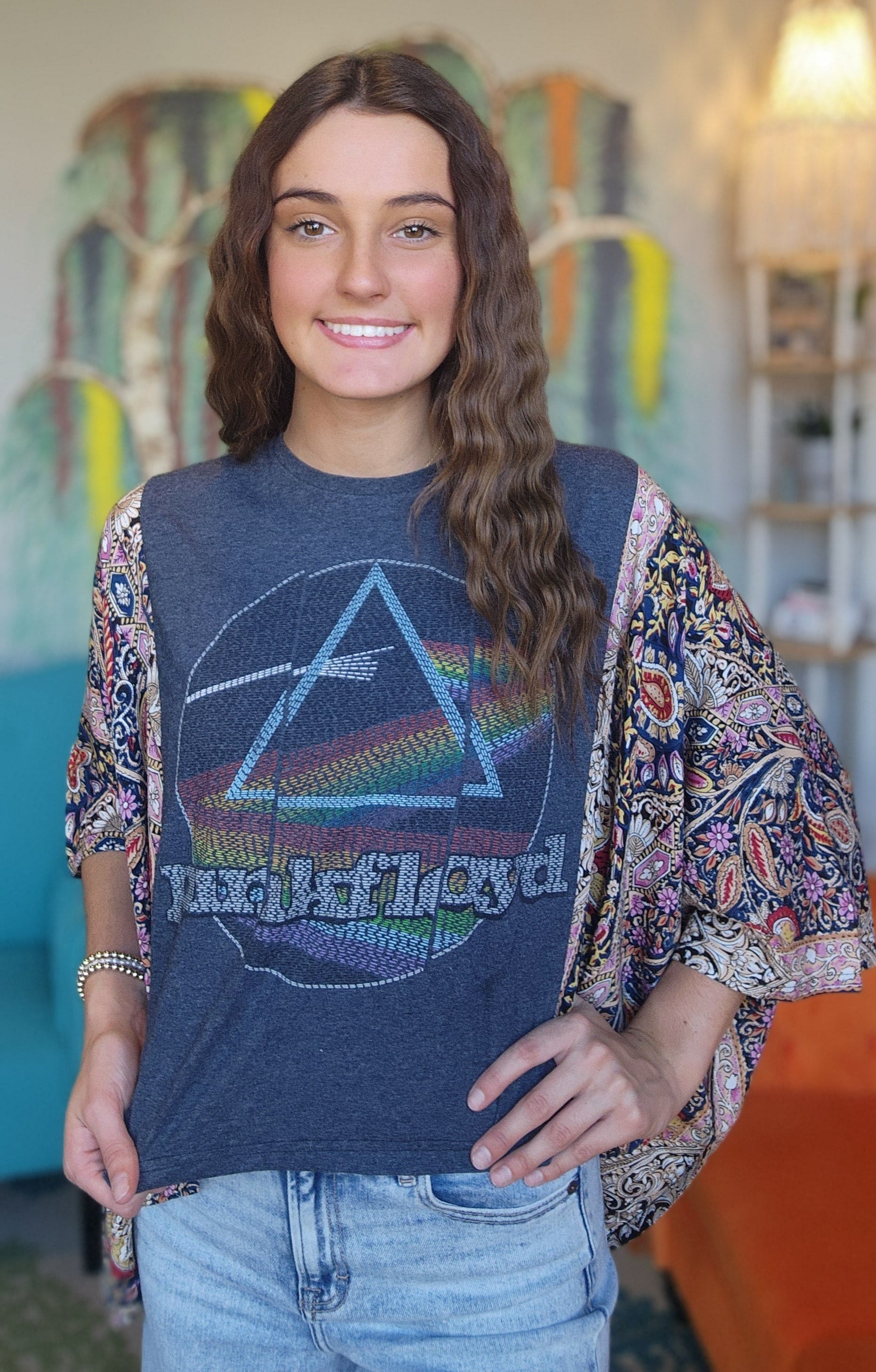 Banded Pullover Tee, Pink Floyd Paisley Sleeve
