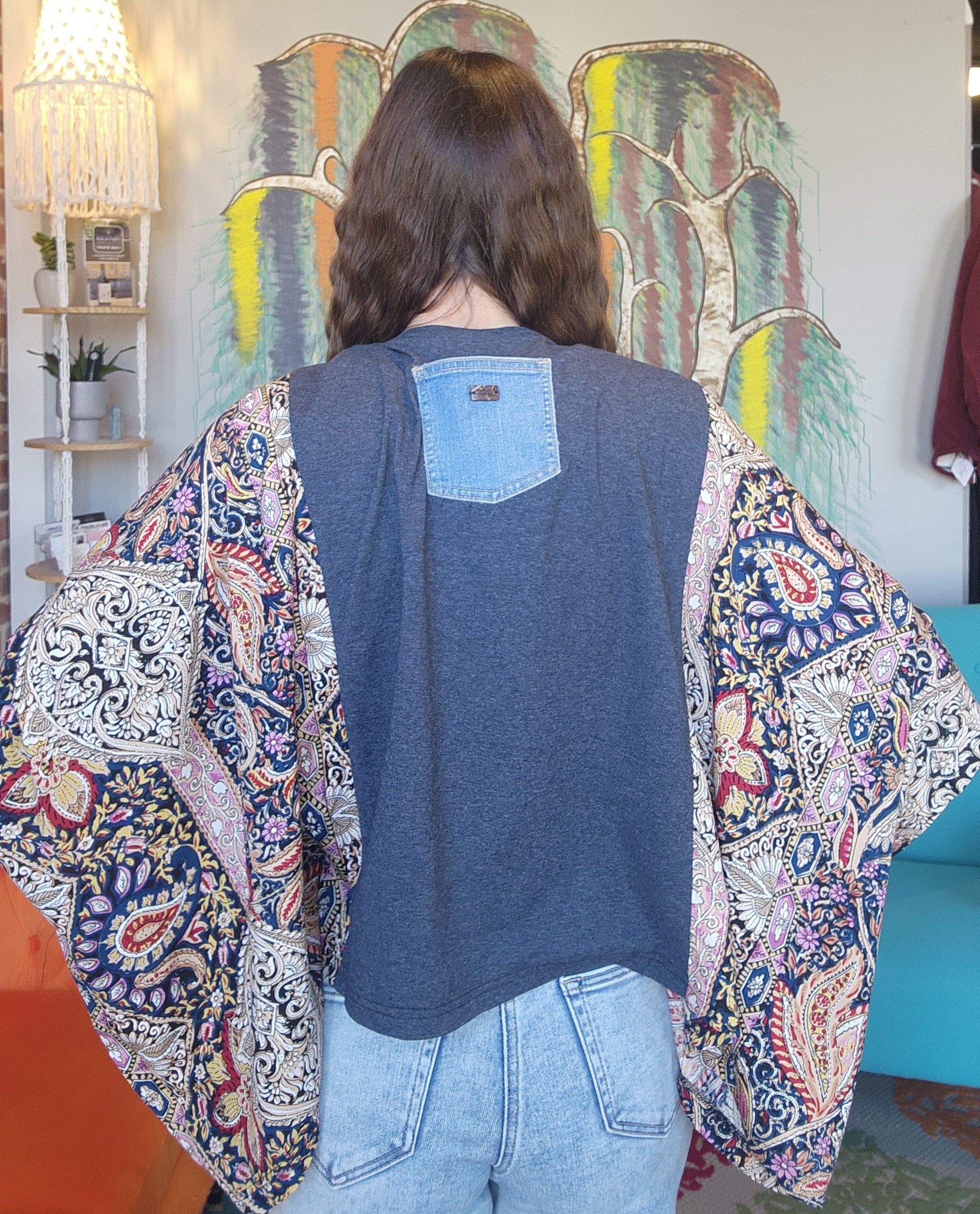 These pieces have been made using upcycled Rock band tees, each piece is one-of-a-kind and designed combining deconstructed vintage denim and upcycled band tees. This diverts it from the landfills and gives it new life.