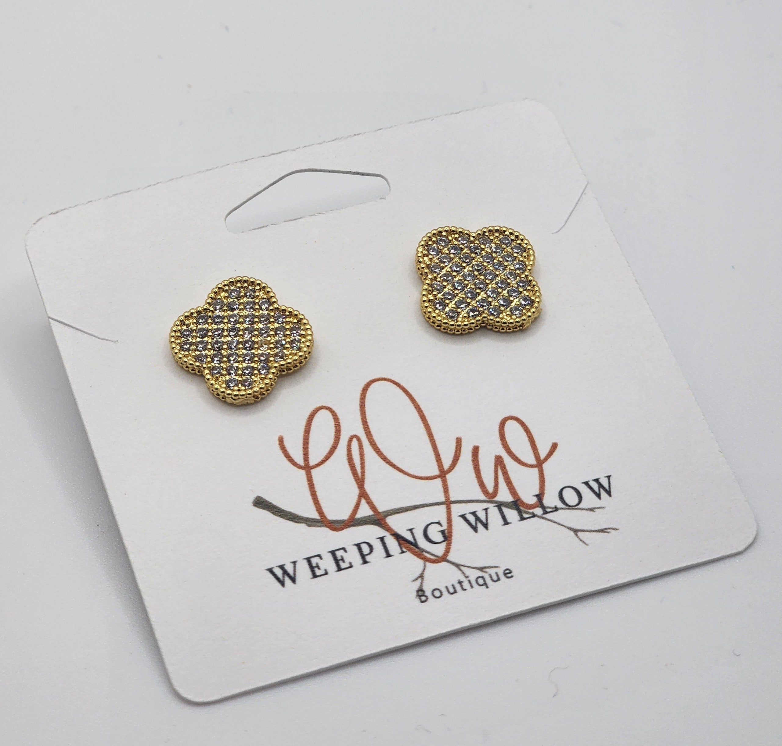 Delicate four-leaf clover studs crafted in gleaming gold. These charming earrings bring a touch of luck and elegance to any outfit, whether you're dressing up for a special occasion or adding a subtle sparkle to your everyday look.