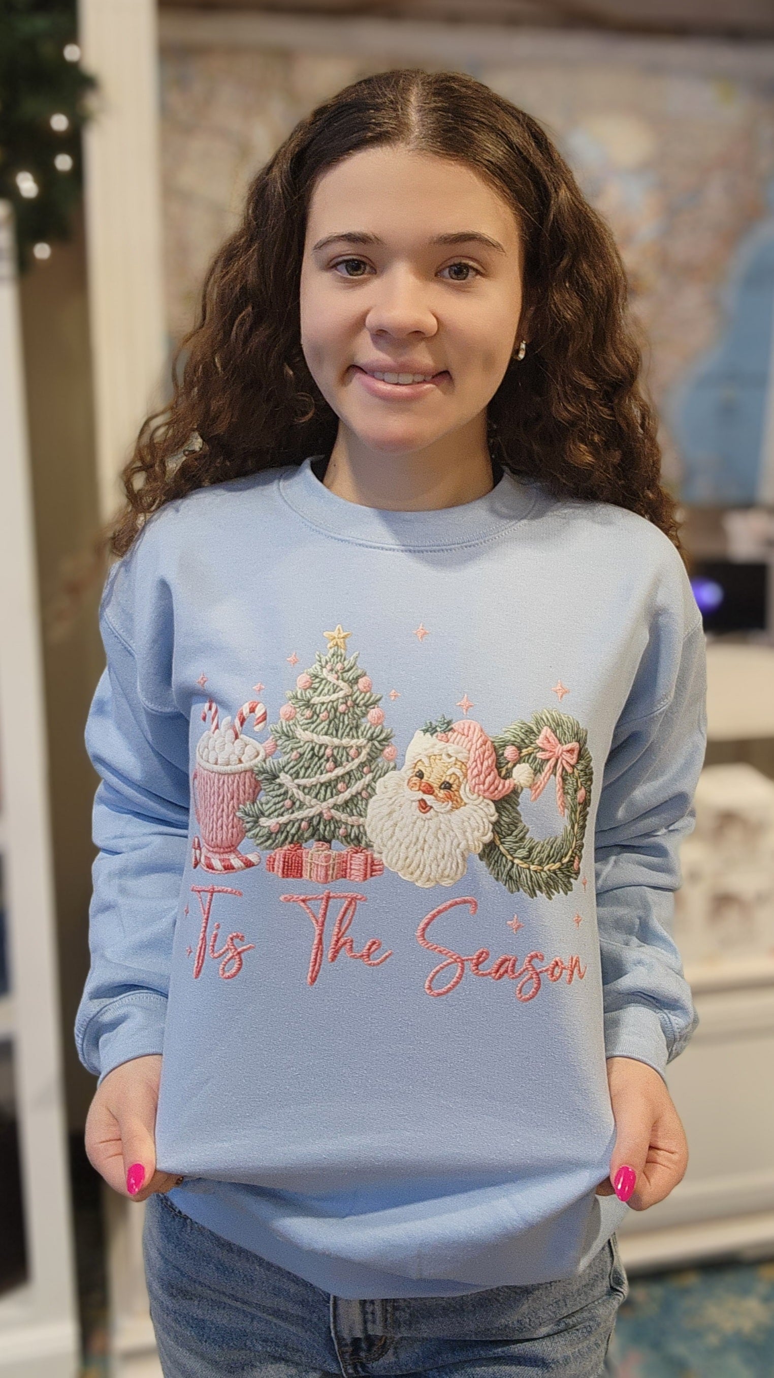 Celebrate the holidays in cozy comfort with this 'Tis the Season graphic sweatshirt. Crafted from soft faux yarn fabric, it delivers warmth without the weight, making it perfect for layering through winter gatherings and casual holiday outings. The festive graphic adds instant seasonal charm to your wardrobe. Whether you're decorating, shopping, or simply enjoying time with loved ones, this sweatshirt keeps you feeling merry and comfortable all season long.